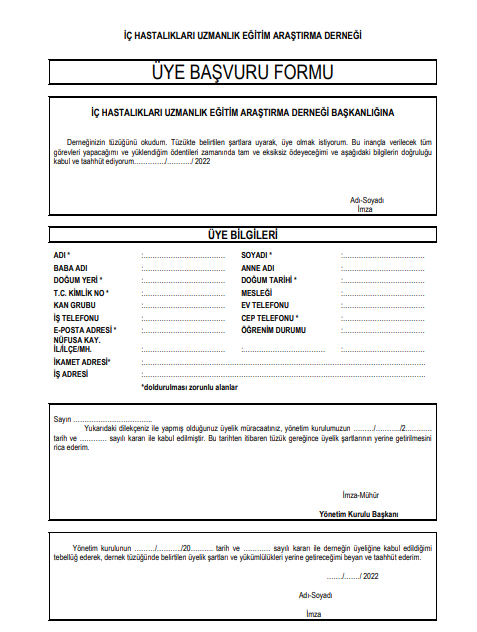 Üye Başvuru Formu İndir